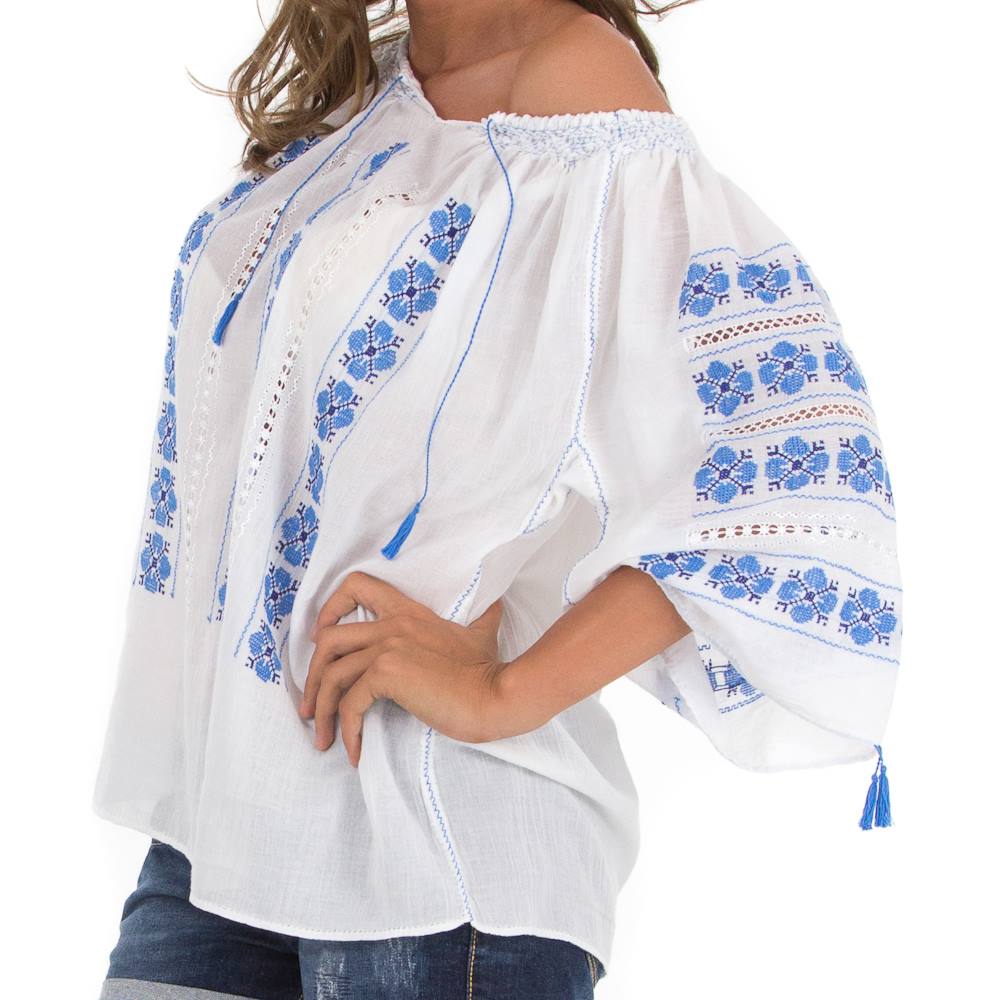 Ia tradițională este lucrată în întregime manual, pe pânza topită din bumbac, croită pe drept din patru fâșii de pânză: piept, spate și mâneci, unite prin cusătura manuală si încrețită la gât.