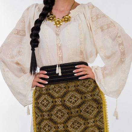 Broderia este realizata prin scoaterea firelor din tesatura,inodate fiecare in parte si batuta broderia cu matase pe dantela creata,nu este aplicata...